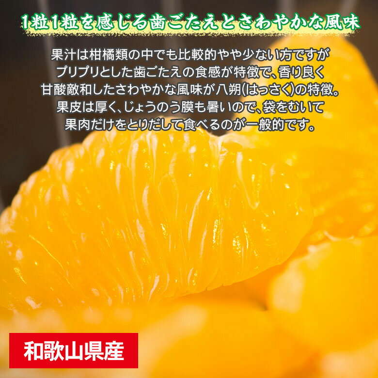 生産地 和歌山県 販売者 株式会社GIANTKILLING クール便 非対応 商品説明 1粒1粒を感じる歯ごたえとさわやかな風味! 果汁は柑橘類の中でも比較的やや少ない方ですがプリプリとした歯ごたえの食感が特徴で、香り良く甘酸敵和したさわやかな風味が八朔(はっさく)の特徴。