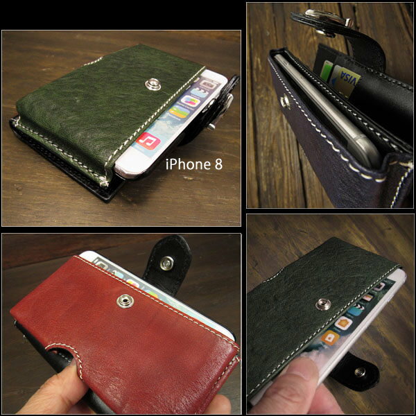 Front pocket is easy to access your device and get it at quickly.100% Handmade! Well-made by leather craftsmen by hand ! The wrist strap is not included this item. スナップを外して開くとスマホを取り出せます。