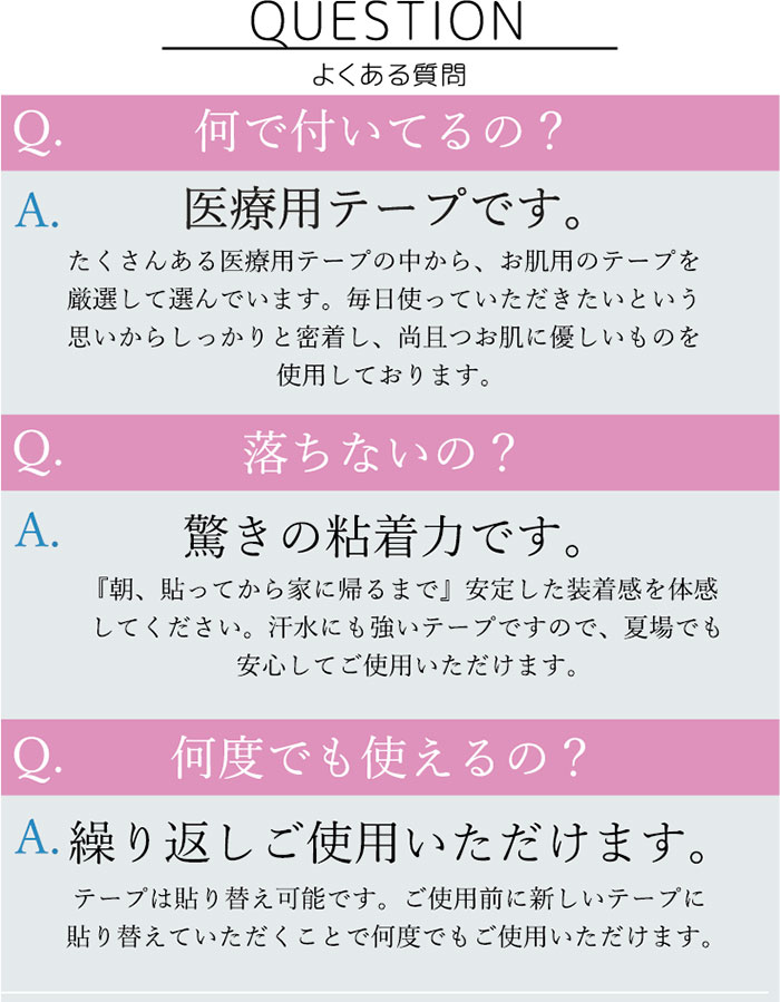 ●しっかりくっつく お肌にしっかりと密着しますので引っ張っても大丈夫です! 汗水にも強いですので夏場でも安心してご使用ください。